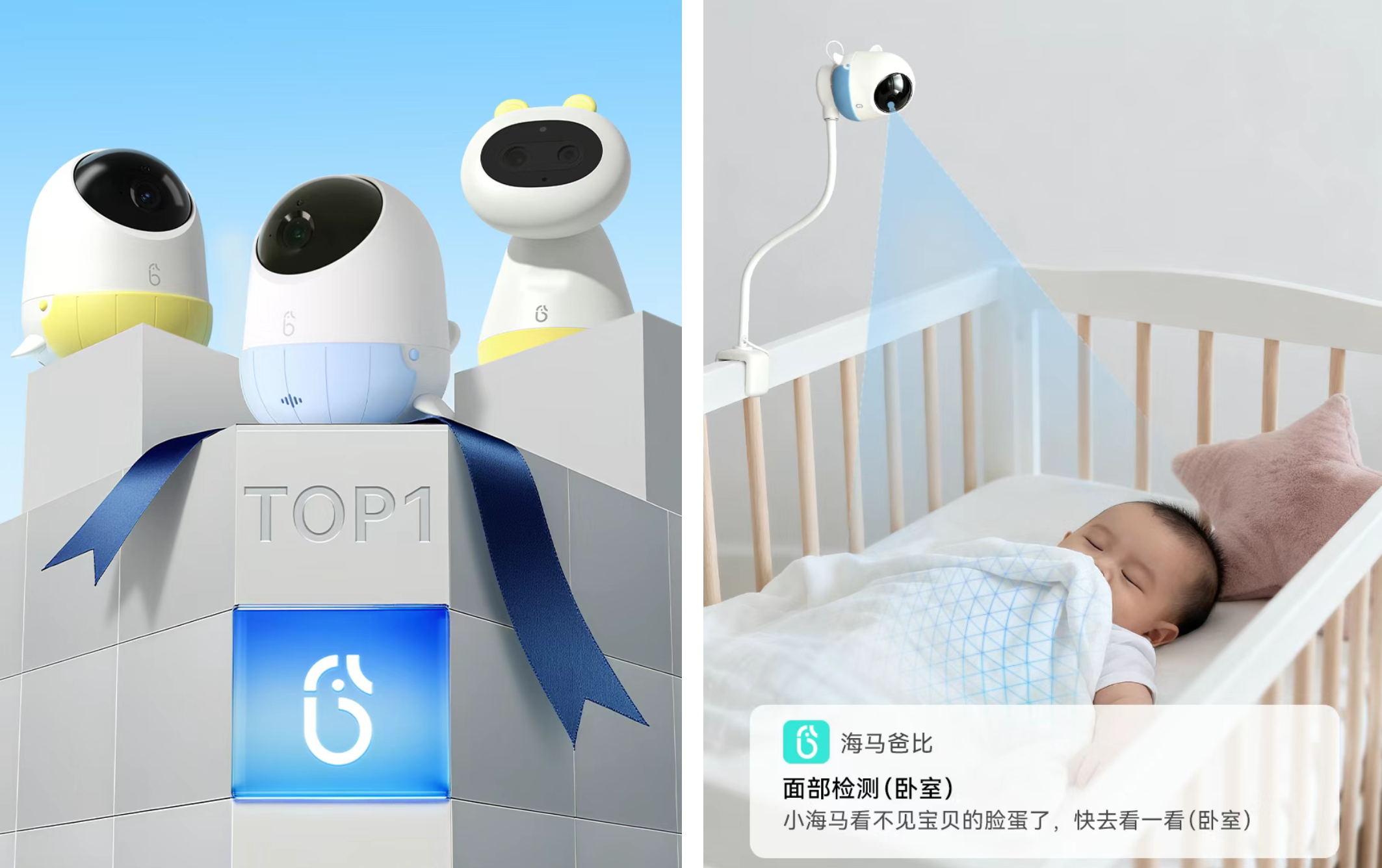 在AI育儿产品这条快速发展的赛道上,海马爸比以“科技让育儿更轻松”为核心理念,凭借17年AI研发积累,成为行业引领者。品牌名称源自“海马”这一唯一雄性育儿的动物,天生承载“既守护宝宝,也呵护妈妈”的定位,自推出首款智能婴儿监护摄像头以来,其不仅开创了婴童看护新类目,更多年稳居AI智能婴儿看护器品类销售额榜首,产品全面覆盖睡眠监护、啼哭检测、虚拟围栏等核心功能,有领先行业的综合实力。