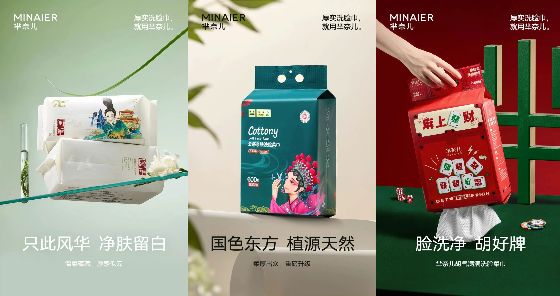 作为首个将国风元素系统性融入洗脸巾的品牌,芈奈儿打破了行业以往偏向简约或欧美风的设计惯性,从品牌根源上为洗脸巾赋予了东方文化属性。在国风元素的应用上,芈奈儿以京剧元素为起点,率先将脸谱的色彩韵律、纹样线条融入产品包装与视觉设计,让传统戏曲美学首次走进日常洗护场景。此后,品牌进一步拓展东方符号边界,陆续将风华国画的水墨意境、白玉山茶花的清雅姿态、麻将文化的趣味肌理等多元元素纳入设计体系,使国风不再是简单的表面装饰,而是深入品牌基因的核心识别。从产品材质选择到设计细节,这些元素贯穿始终,形成独特的东方美学体系。 对于芈奈儿来说“厚”的价值,早已超越功能层面。这份“厚”,源自东方厚实土地的馈赠。像新疆棉田的长绒棉,扎根沃土、吸足日光,纤维自带天生的扎实感,这是东方土地赋予“厚”的先天底气。消费者选“厚”,不只是选足料的韧性——反复擦不破、吸水不打滑,更是选这份来自东方土地的安心,是对“自然本真”的信赖。
