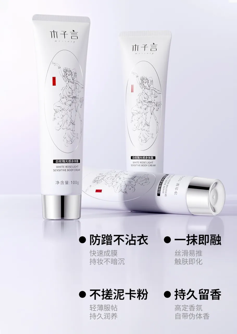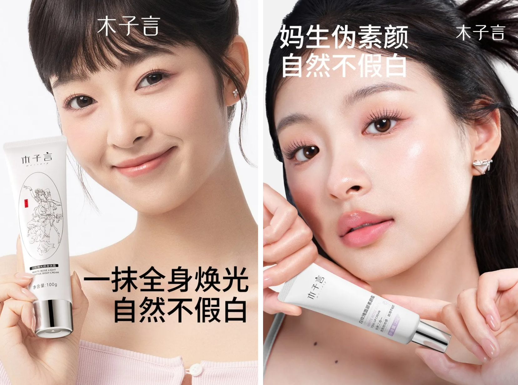木子言素颜霜进行了“面部+身体”双产品线布局,专研亚洲肤色,解决假白困扰;以彩妆护肤化为追求,通过添加积雪草、玫瑰花等多种天然植物精粹,达到轻透亲肤、长久持妆的效果的同时,亦具有紧致、舒缓、抗氧化的作用,精准承接了消费者对安全多效的品质需求,引领素颜霜从“单一提亮”向“妆养合一”发展。