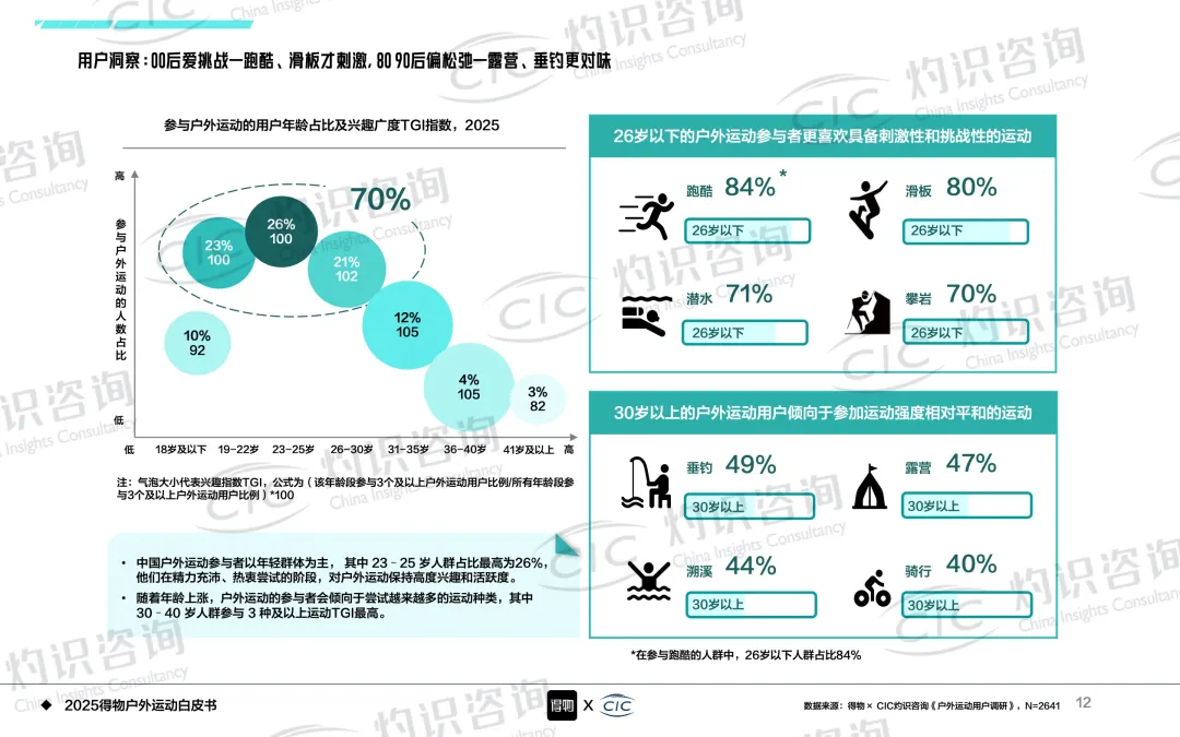 3 年轻群体主导户外运动市场,挑战性与休闲性运动并存