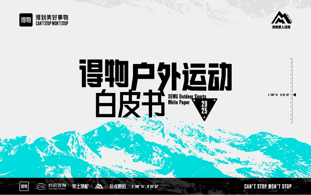 在此背景下,得物App与 CIC 灼识咨询联合发布《2025得物户外运动白皮书》,基于平台交易数据、用户调研及行业洞察,白皮书系统梳理中国户外运动产业的发展脉络与消费趋势,从政策驱动、用户行为、品类演进到平台赋能,全面解读户外运动从小众爱好走向大众生活的变革历程,为品牌方、投资者与产业链参与者提供战略决策依据。